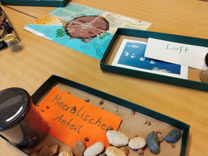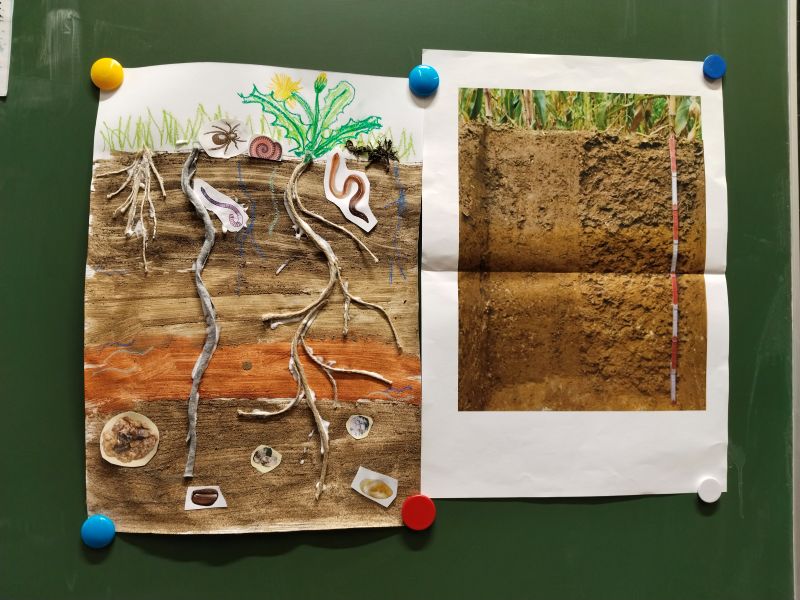 Auch die Großen der Volksschule Ratschendorf durften Bodenpädagogin Magdalena Tamtögl und Biologin Isabella Schaberl von der KEM am 17.11.2025 noch besuchen. Und langweilig wurde es wieder nicht- mit einem Thema wie dem fruchtbaren Boden kann man sin doch mindestens einen Schultag lang beschäftigen. Die Bodenprobe wurde diesmal wetterbedingt mitgebracht und ebenso die obligatorische Wanne mit Kompost für die Forscherstation! Siehe da: irgendwo dazwischen fanden wir einen Pseudoskorpion! Ein Tag lang Experimente und Wissensaustausch, am Schluss wurde das mit Bodenfarben gemalte Bodenprofil noch kreativ mit Wurzeln und Tieren und Edelsteinen ergänzt. Es war uns eine Freude!