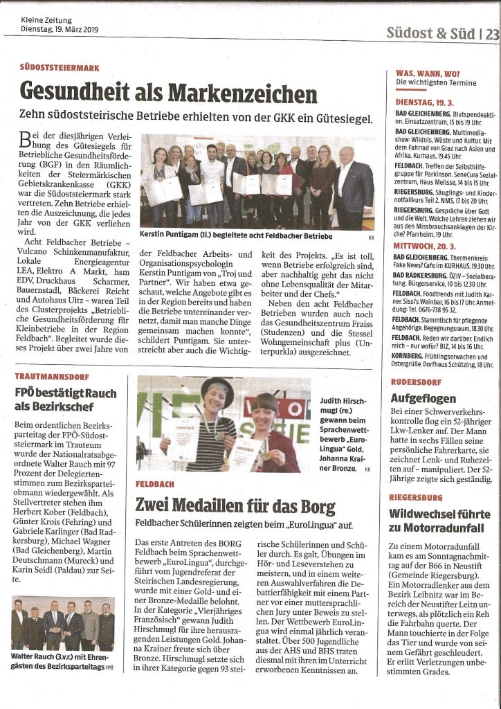 Gesundheit als Markenzeichen, Kleine Zeitung, 19.3.2019
