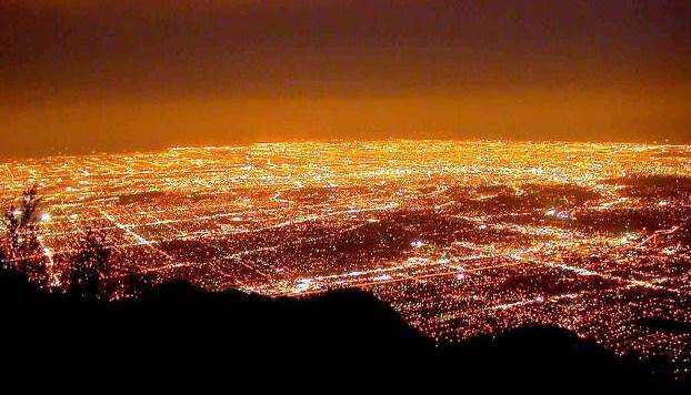 Luftaufnahme Los Angeles vom Mt. Wilson 2002 vor (oben) und 2012 nach (unten) der Umrüstung, Quelle: Bureau of street lighting Los Angeles